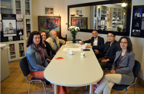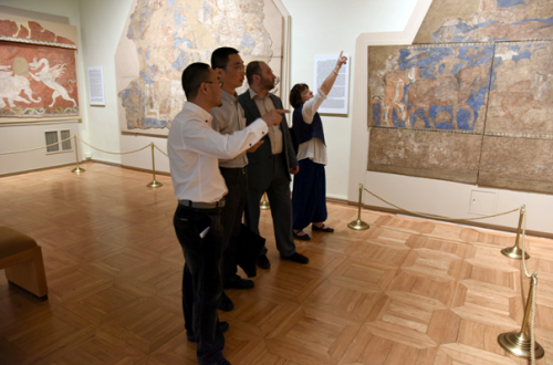 与艾尔米塔什博物馆东方部负责人讨论壁画修复项目