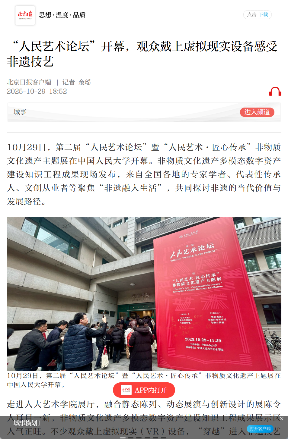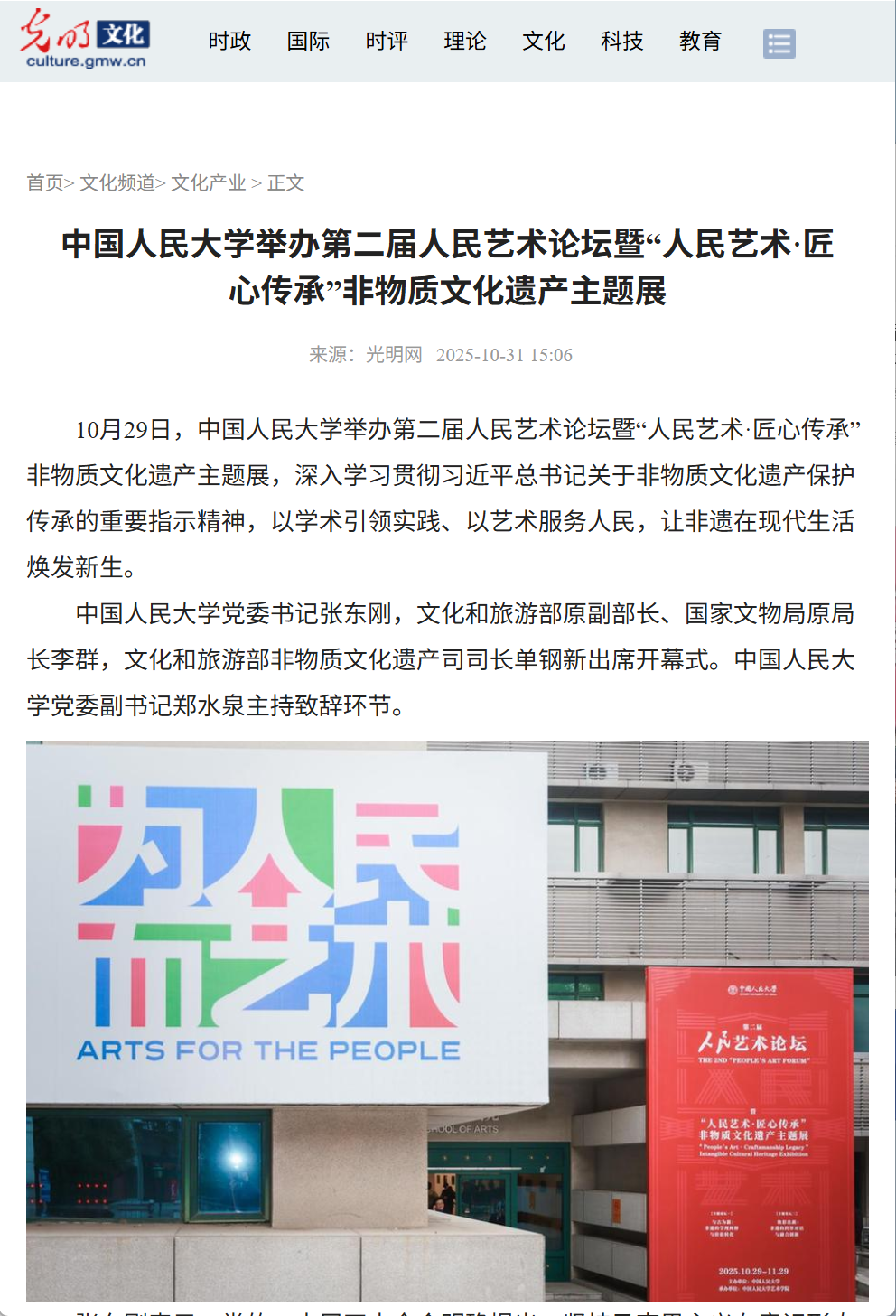2025年10月29日,第二届人民艺术论坛暨“人民艺术·匠心传承”非物质文化遗产主题展在日本成人电影